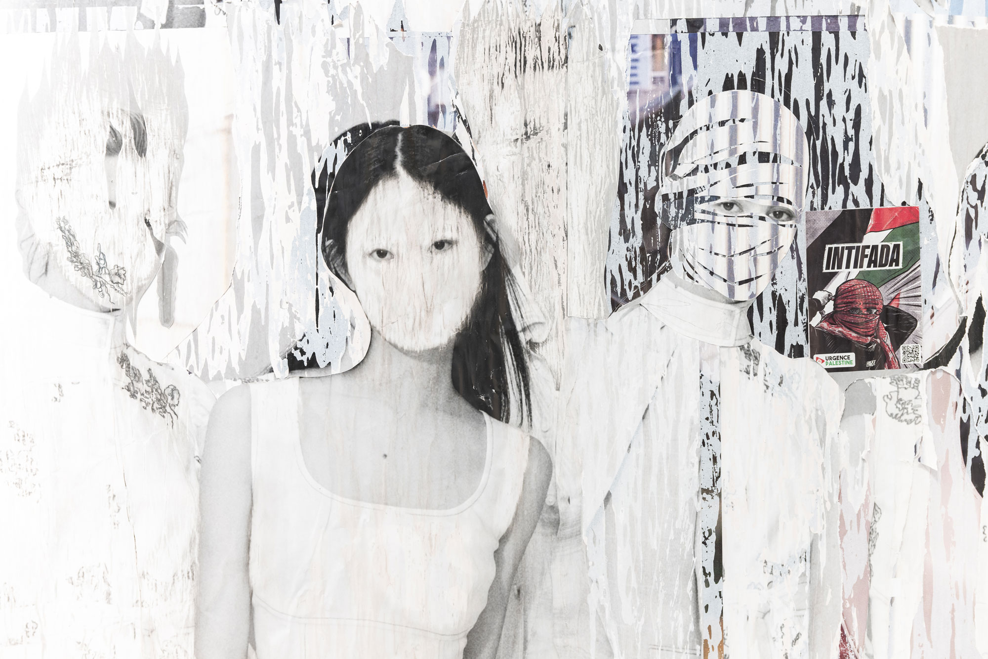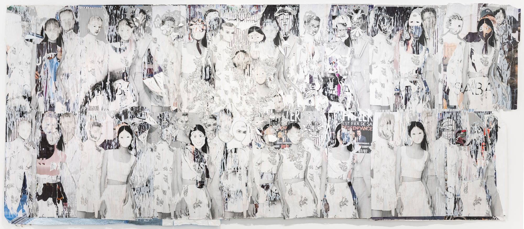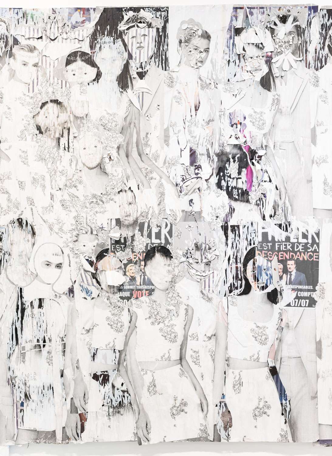 Décollage including collage elements - Nine-layered poster partially removed with a cutter knife and sanding sponge