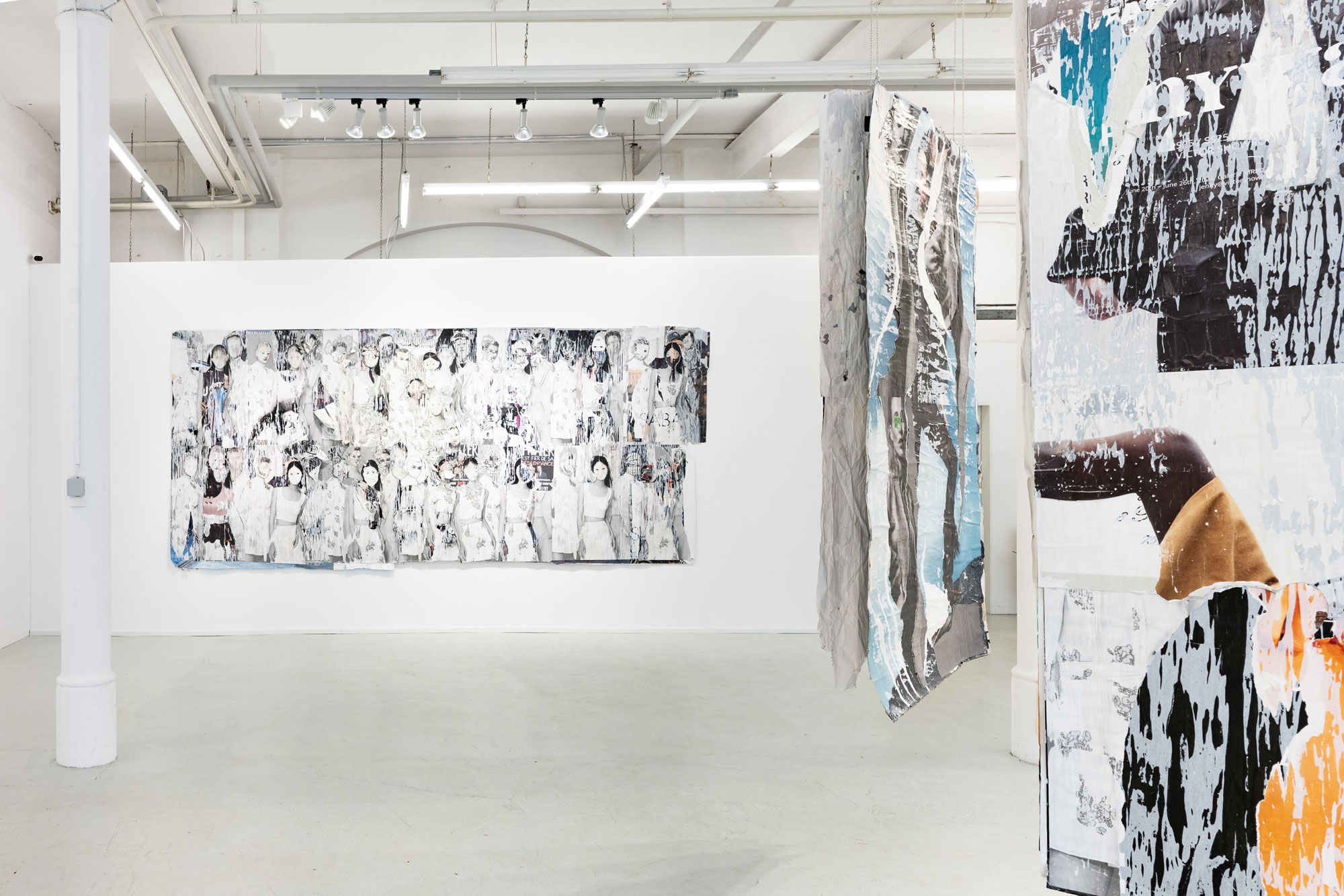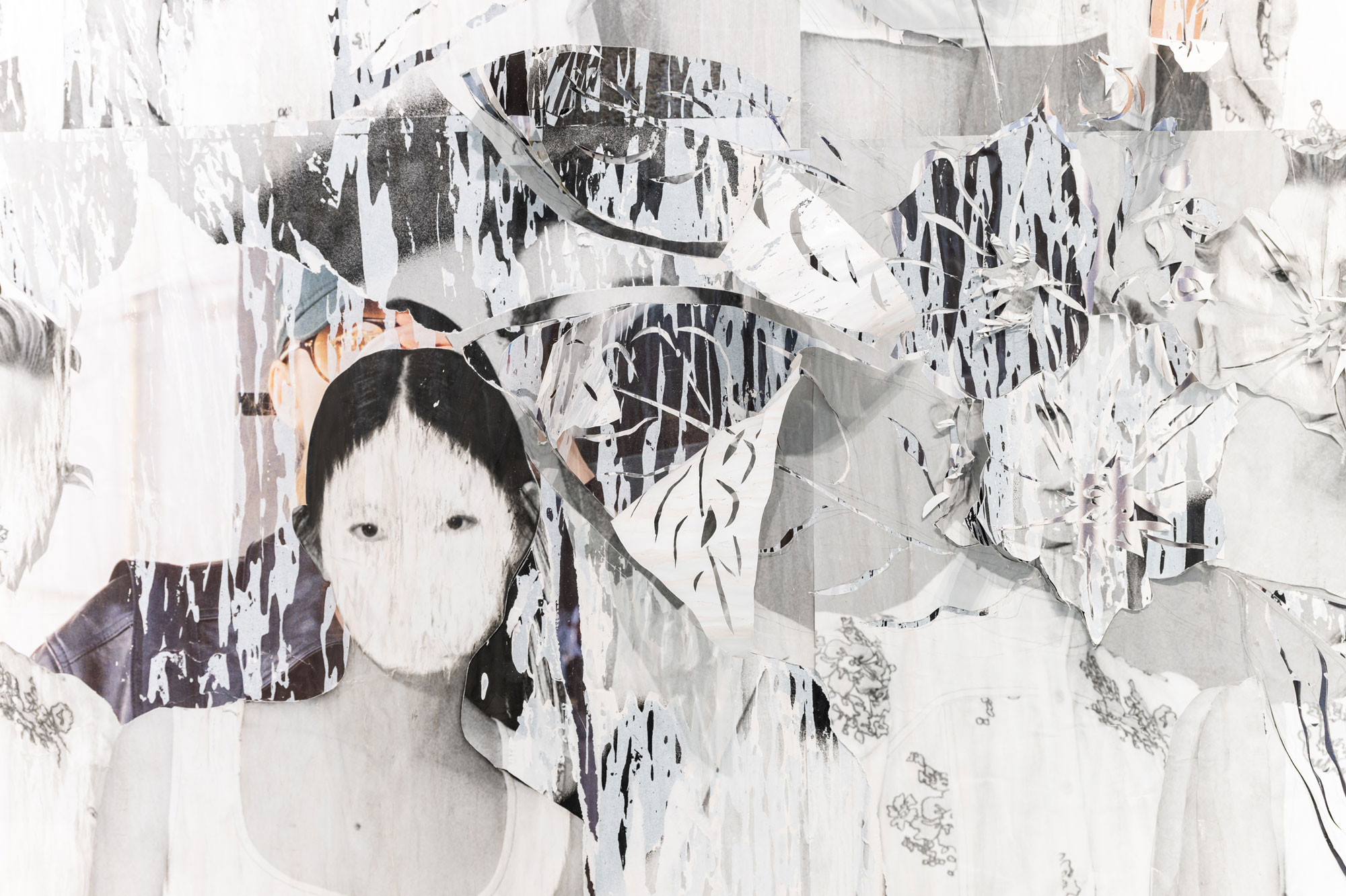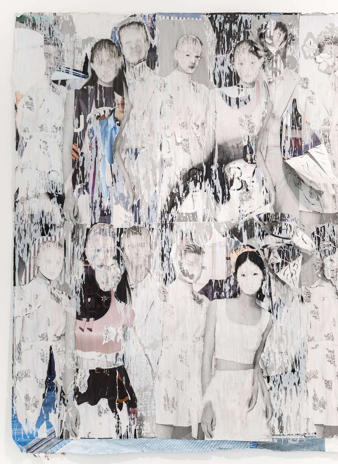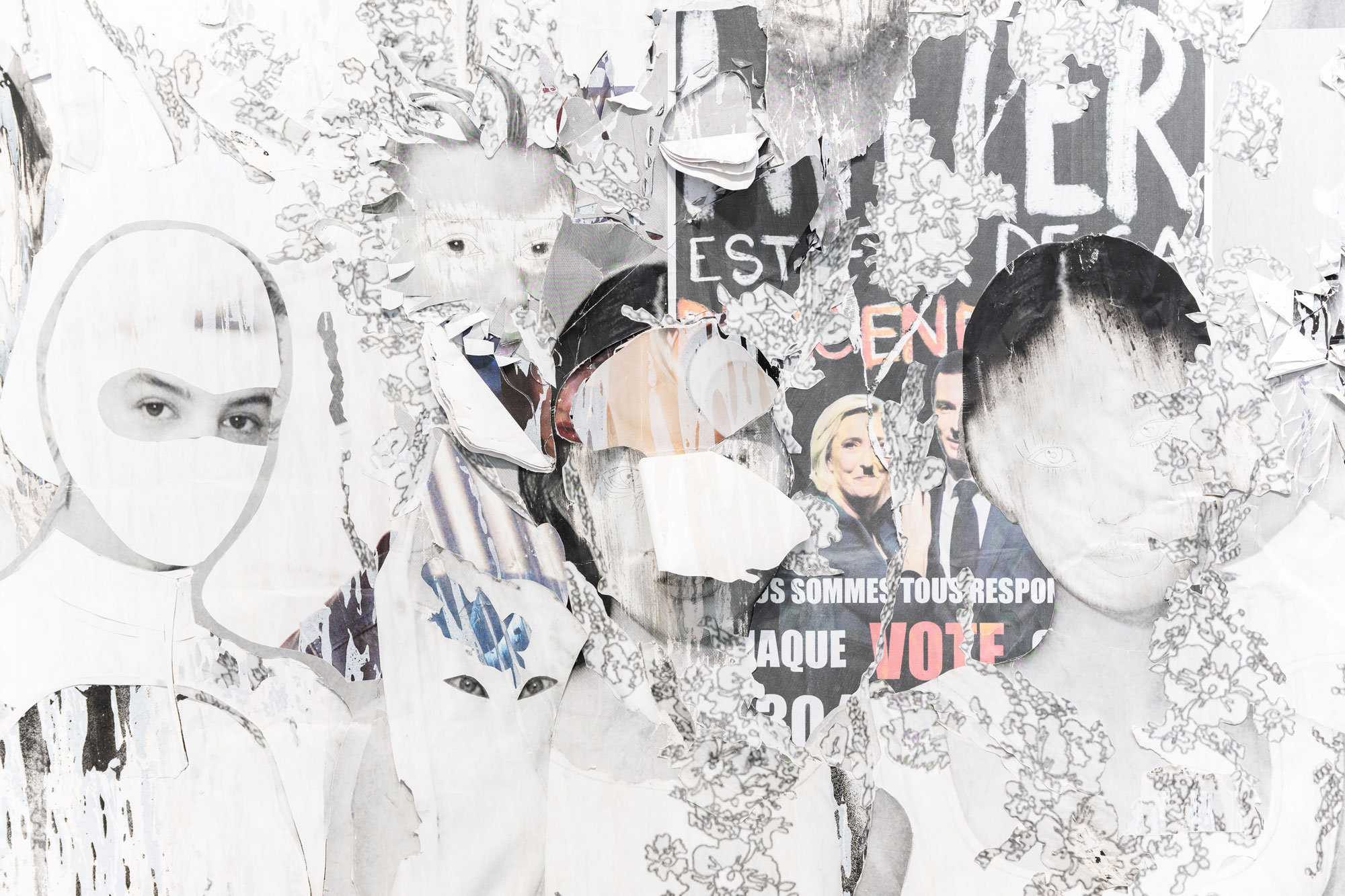 Décollage including collage elements - Nine-layered poster partially removed with a cutter knife and sanding sponge